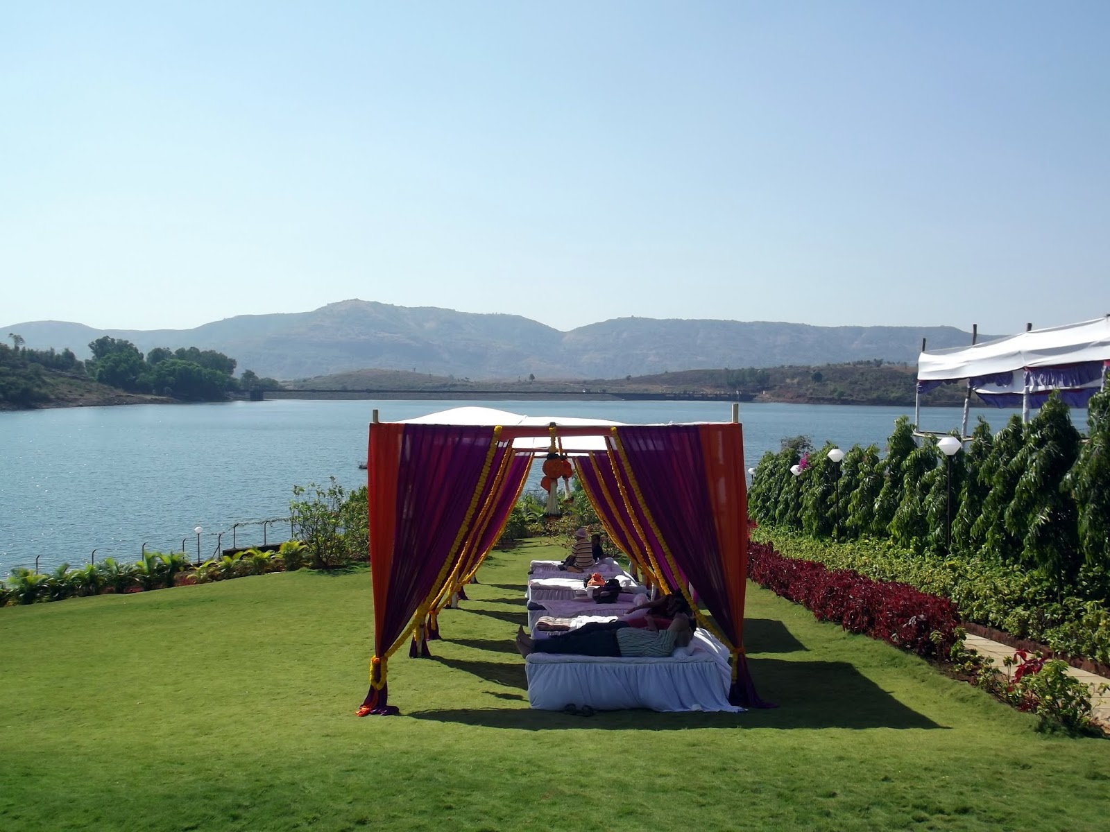 O primeiro evento do casamento foi um dia de piquenique na casa de férias da família da noiva, à beira do lago-represa de Uksan, em Kamshet, a sudeste de Mumbai.