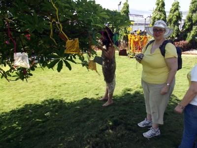 | A Pam fotografando a árvore das pipas depois de deixar sua mensagem ali |