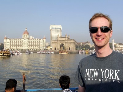 Com meu prato de almoço à sombra, junto com o pessoal da NYU