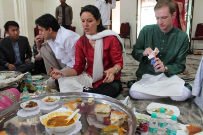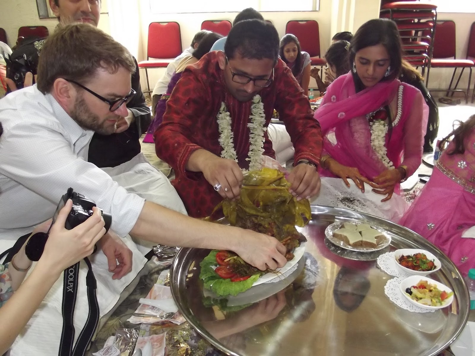 Quer dizer, foi o primeiro evento de que participei. O casamento começou com a cerimônia perante a autoridade religiosa (muçulmana), no início de janeiro, restrita às famílias — a alguns homens das famílias, entenda-se. A festa principal (para 2.500 convidados), gran finale do casamento, ficou marcada para 19 de janeiro. Antes dela, houve duas semanas de recepções menores, essencialmente familiares, mas para as quais eu também estava convidado. Acabei participando apenas da segunda dessas semanas, até porque eu não tinha tanto tempo de férias e queria também aproveitar para passear em outras partes da Índia.